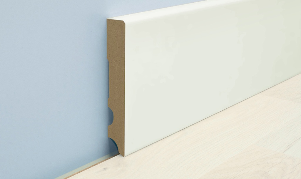 Плинтус из МДФ - это профили из древесного прессованного сырья с декоративным слоем, который имитирует различные материалы или же может быть просто белым. Кроме того, есть плинтусы из МДФ под покраску. Стыкуются планки без уголков и фурнитуры, методом запила под 45 градусов.