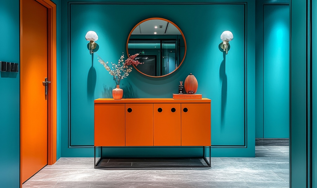 Прихожая — это первое помещение, которое видят при входе в дом, поэтому здесь важно добиться гармонии между яркими стенами или дверями и цветом пола. Для прихожей с яркими стенами подойдут покрытия теплых нейтральных оттенков, которые устойчивы к загрязнениям и визуально расширяют пространство. Светлый пол придаст прихожей легкость, а серый или натуральный древесный оттенок добавит уюта и практичности. Это может быть как керамогранит, так и линолеум или SPC ламинат. Именно эти напольные покрытия наиболее устойчивы к влаге и частым загрязнениям.