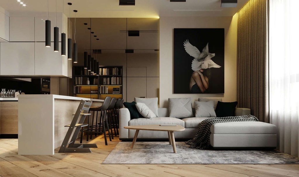 В этом стиле предпочтение отдается избранным аксессуарам, таким как скульптуры, минималистичные картины или функциональные светильники. Особое внимание уделяется освещению: современные лампы и встроенные световые решения помогают создать атмосферу уюта и подчеркивают архитектурные особенности помещения.
