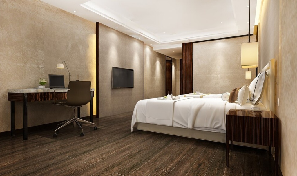 Напольные покрытия из натурального дерева можно встретить в отелях и номерах высокого класса, где небольшая проходимость людей.