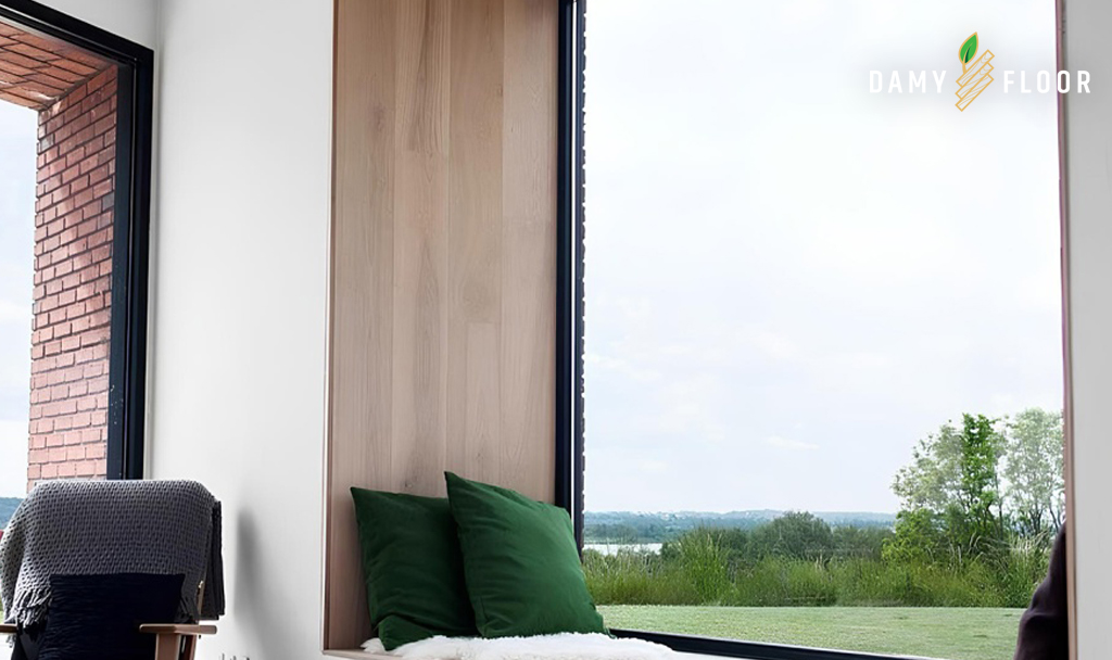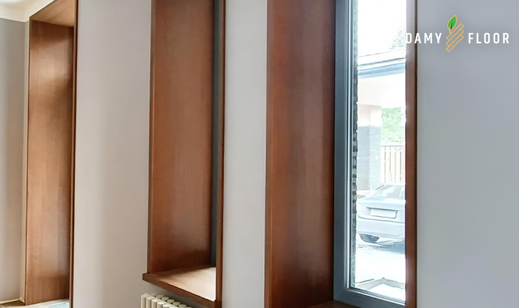 Откосы, оформленные кварц-винилом под дерево или камень, выглядят аккуратно и собранно. Такой материал не боится влажной уборки, не реагирует на перепады температуры у окна и не требует регулярного подкрашивания.