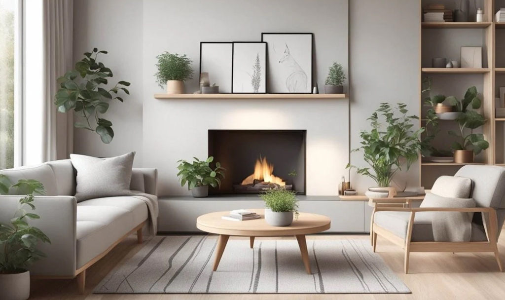 Живые растения, обычно крупные, также являются неотъемлемой частью декора и придают интерьеру свежесть. Картины и фотографии в простых рамках, свечи и минималистичные лампы завершают образ уютного и гармоничного скандинавского интерьера.