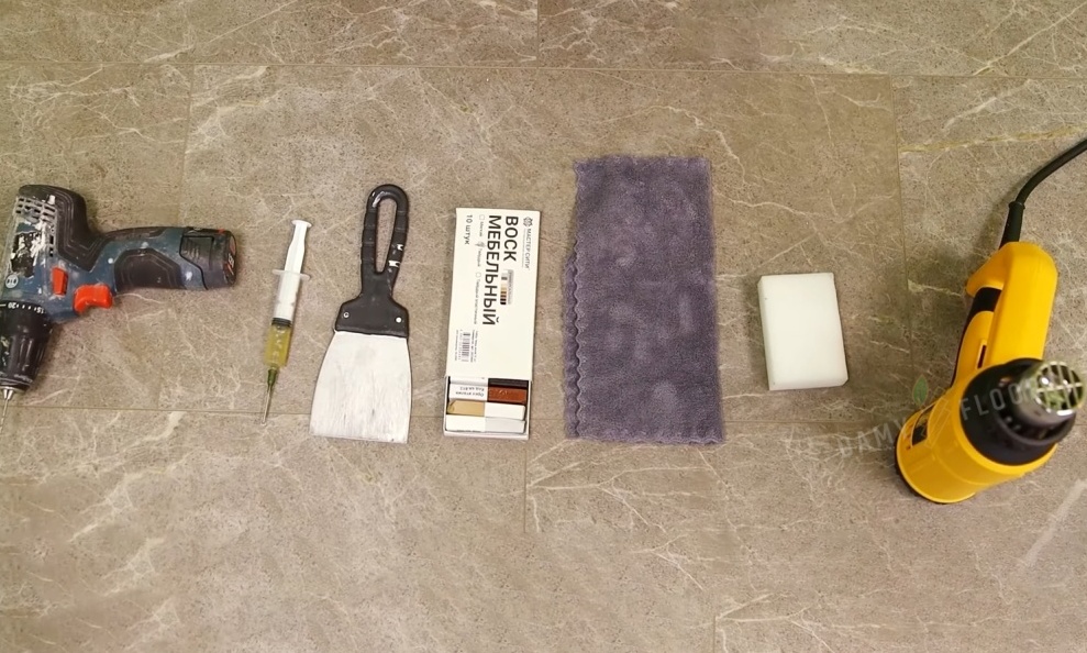 Чтобы избавиться от скрипа без вскрытия всего пола, достаточно простого набора инструментов. Всё это легко найти в строительном магазине.