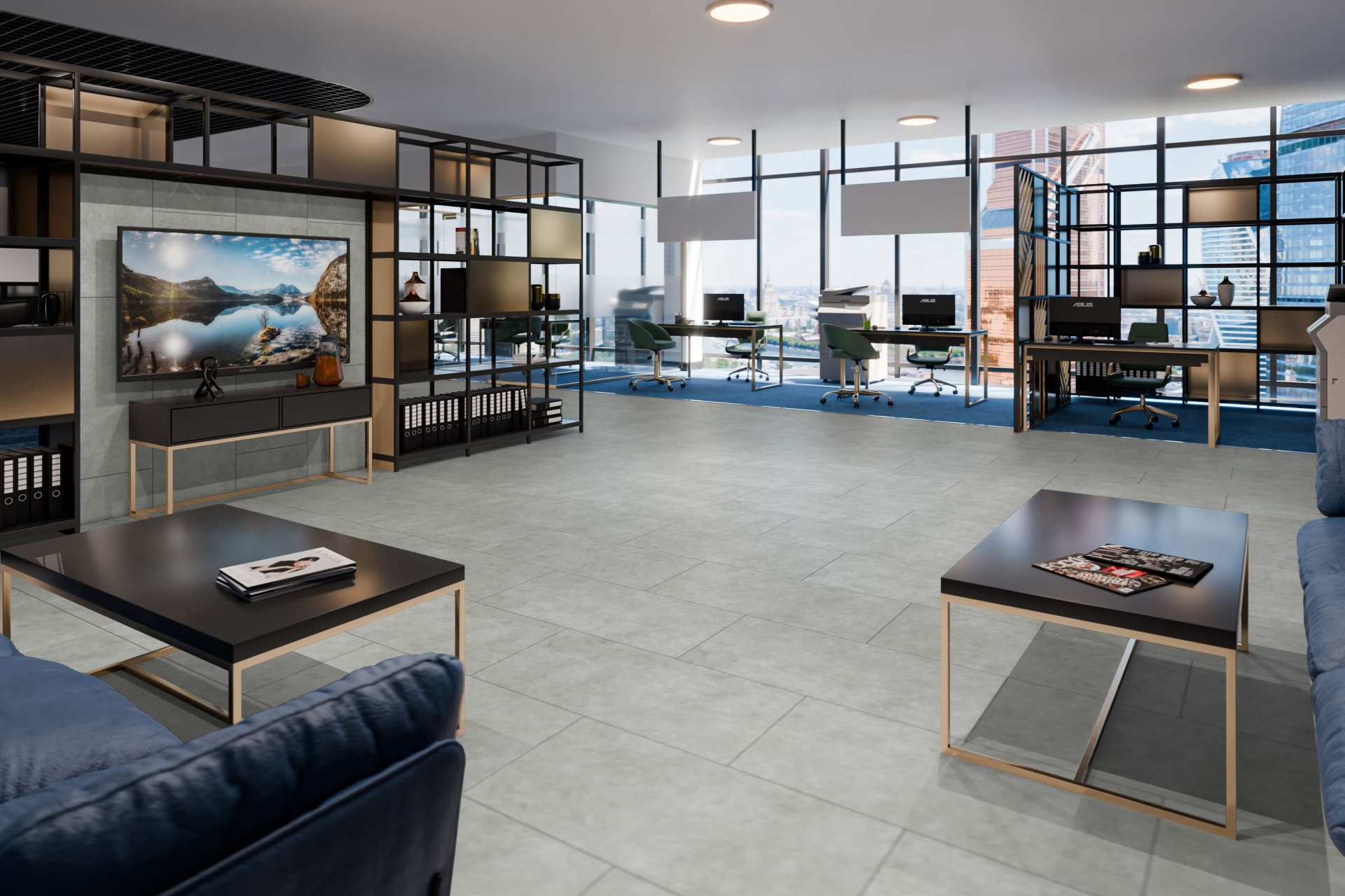 Помещение с LVT-плиткой DAMY FLOOR выглядит эффектно и благородно.
