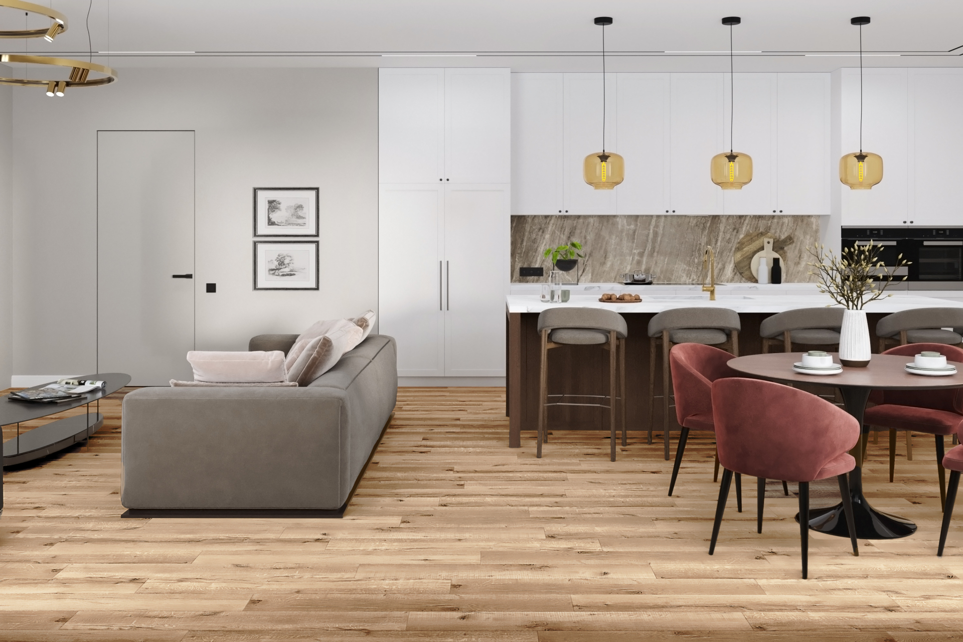 Кварцевый SPC ламинат из коллекции Family поможет создать уют в гостиной, спальне, детской