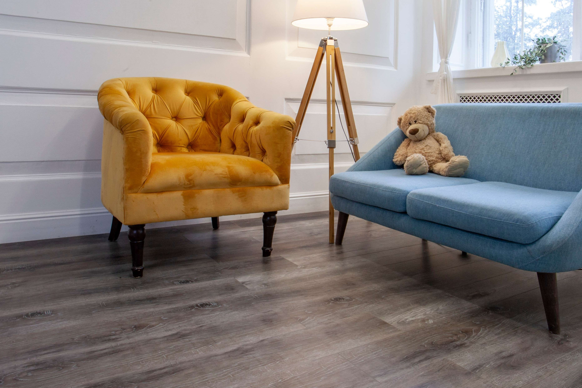 Кварцевый SPC ламинат из коллекции Family поможет создать уют в гостиной, спальне, детской