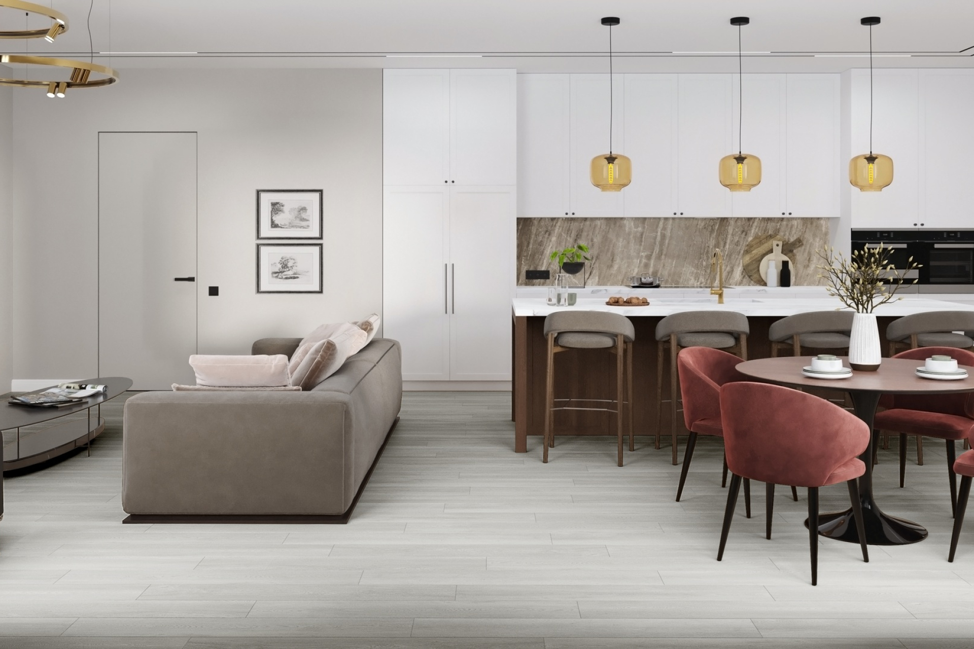 Кварцевый SPC ламинат из коллекции Family поможет создать уют в гостиной, спальне, детской