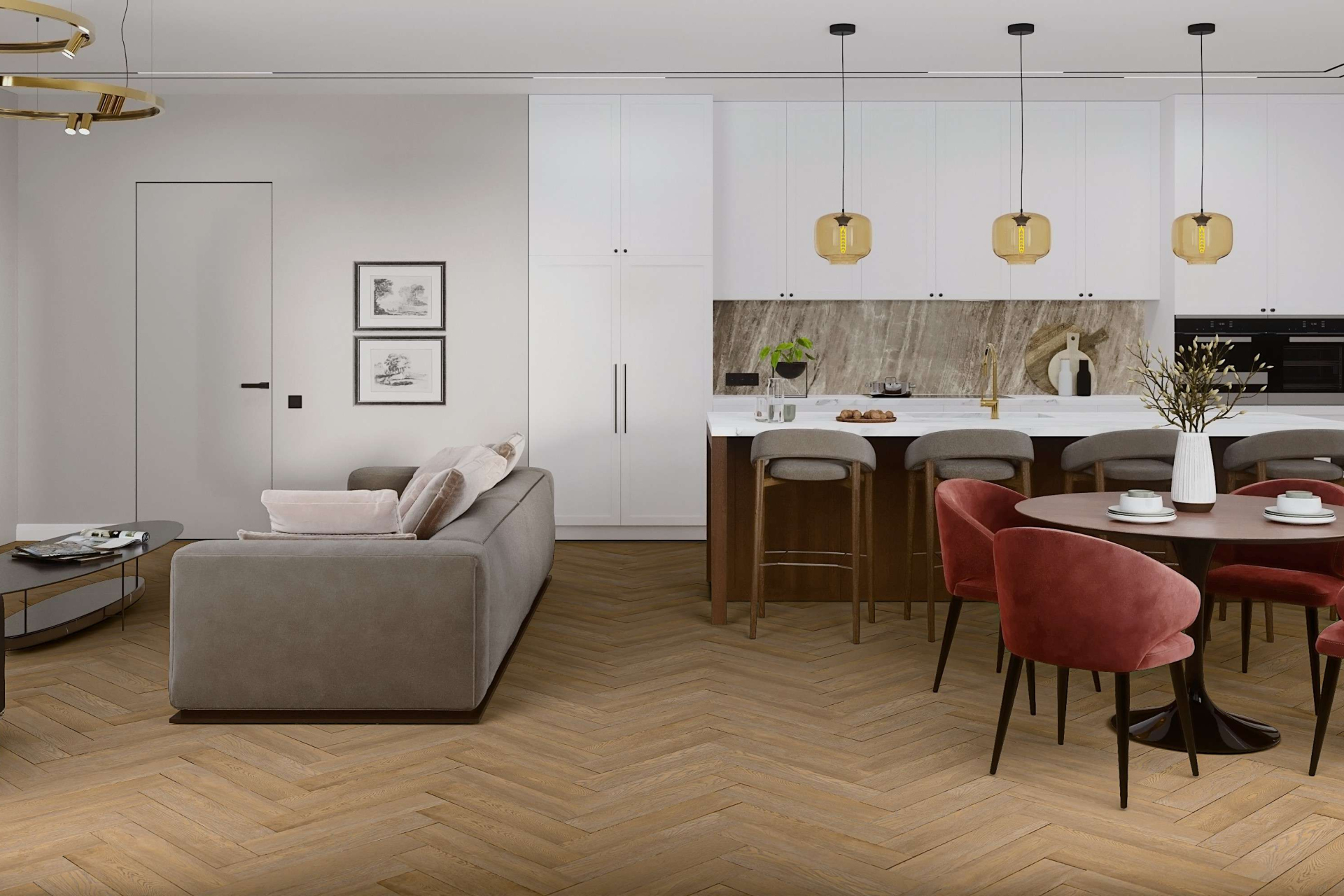 «английская ёлочка» делает интерьер изысканным и благородным, но при этом сохраняет