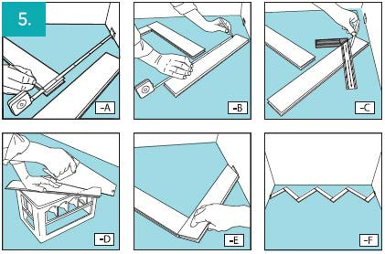 Соедините треугольники между собой путем добавления нескольких дополнительных линий панелей. Каждую линию начинайте укладывать слева направо панелями А, заканчивайте нарезанными панелями (см.пункт 5), затем установите в линию все панели В. Завершите левой конечной панелью, отрезанной по размеру.(см. пункт 5)