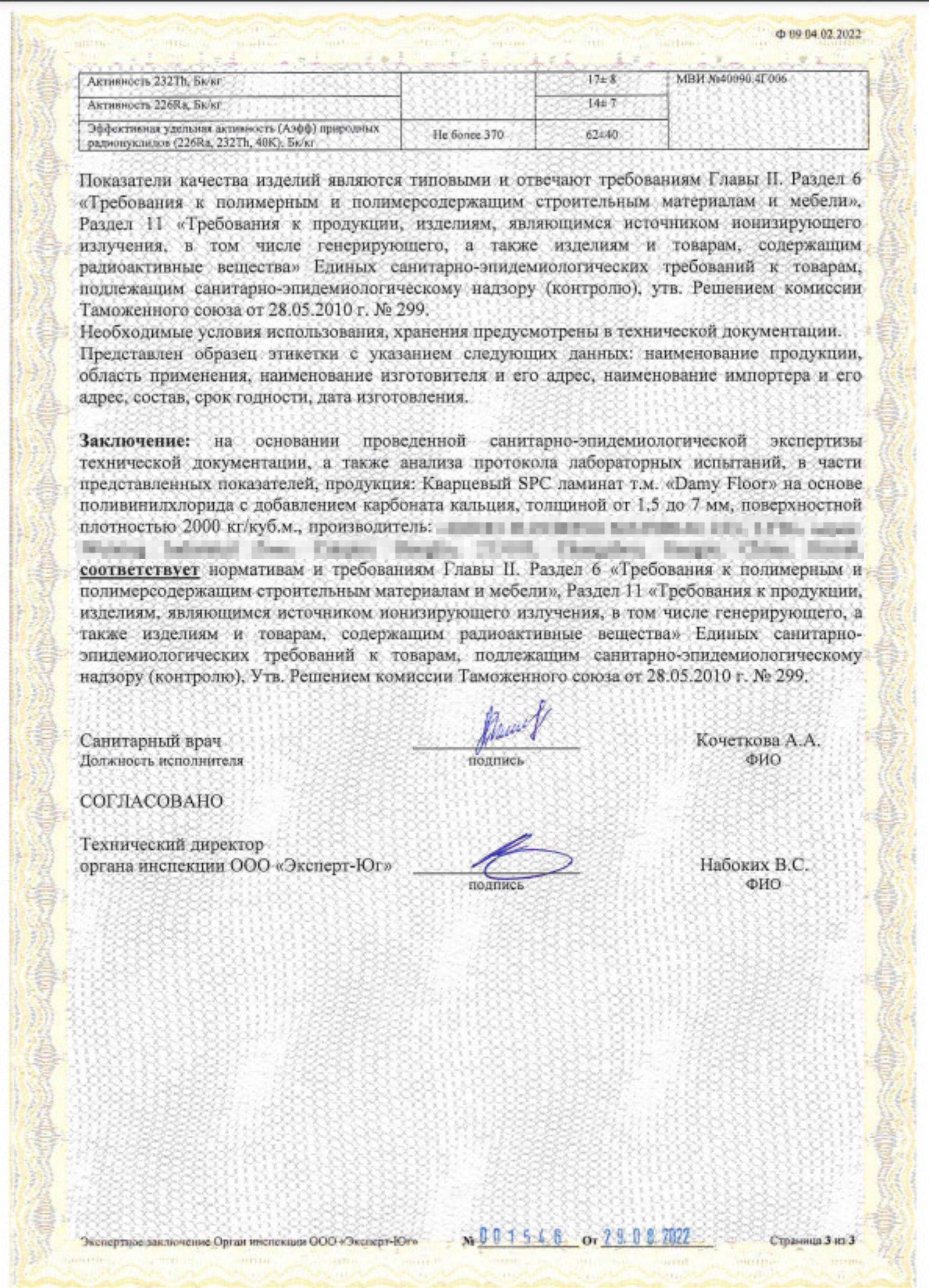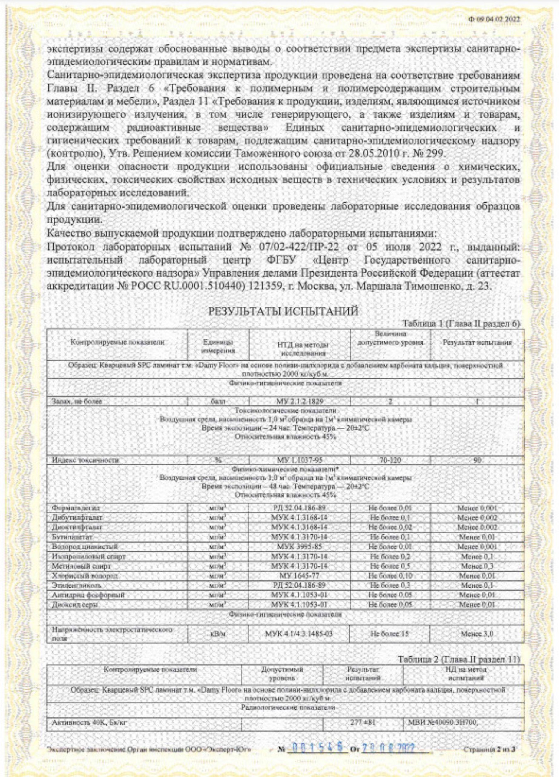 Санитарно-эпидемиологическое заключение является официальным документом, удостоверяющим соответствие продукции государственным санитарно-эпидемиологическим нормам и правилам. Заключение выдается органами государственной СЭС РФ, Роспотребнадзором, его территориальными или другими ведомственными управлениями. Основанием для выдачи санитарно-эпидемиологического заключения служат результаты экспертизы нормативной документации на продукцию, её использования, производства и непосредственной гигиенической оценки. Для импортного товара данным основанием выступает оценка сертификата качества и безопасности страны-поставщика, а также результатов исследований продукции, выполняемых в России.